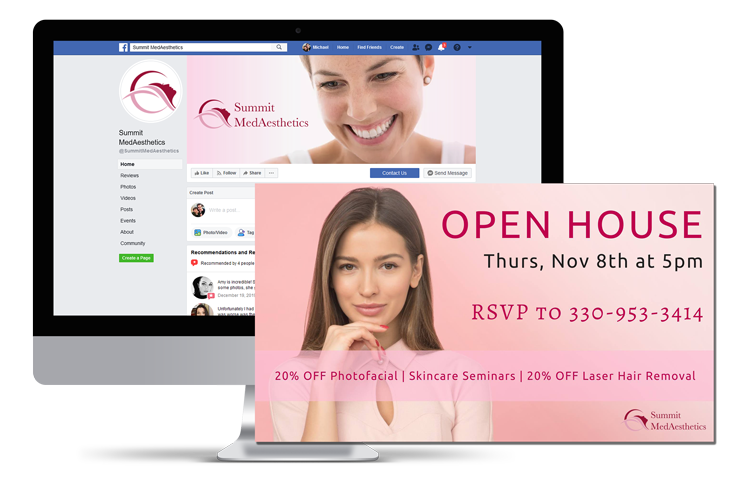 A newly developed business, Summit MedAesthetics, had recently opened its office and wanted to bring in new clients. We advertised an open house through Facebook events using branded graphics and targeted audiences.